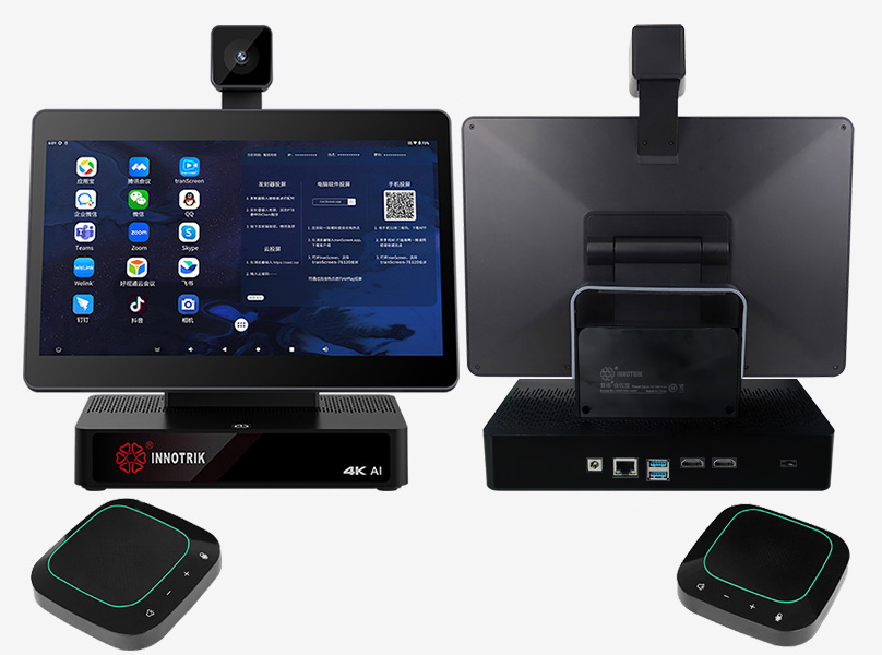 I-5310(雙麥版)是一款基于安卓12操作系統(tǒng),集13.3英寸高清顯示屏、4K超清攝像頭、4個陣列麥克風(fēng)和高性能揚聲器于一體的智能一體化終端產(chǎn)品。拓展2個無線拾音麥克風(fēng)與一體機之間通過無線傳輸連接。支持以太網(wǎng)連接、WIFI連接;支持HDMI OUT輸出,HDMI IN輸入。八核的處理器和8G內(nèi)存+32G存儲和內(nèi)置鋰電池4800mA能滿足日常的個人辦公室、家庭聚會、網(wǎng)絡(luò)培訓(xùn)和中小型會議室。