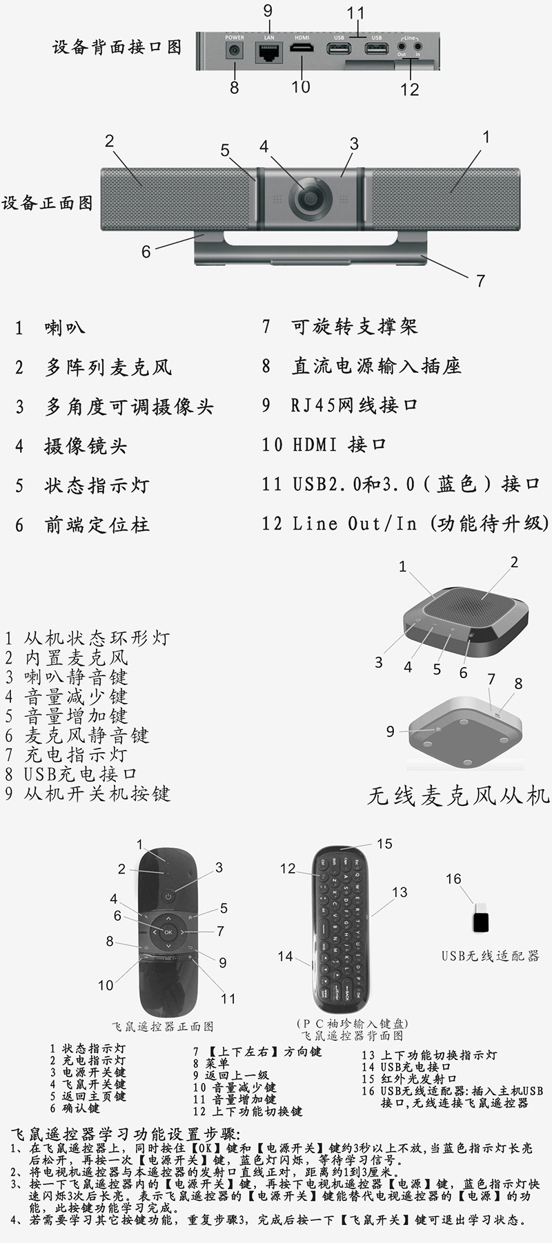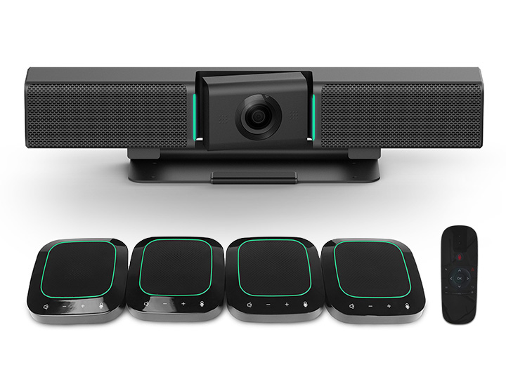 I-5210(四麥版)是一款集4K超清攝像頭、4個(gè)陣列麥克風(fēng)和揚(yáng)聲器于一體的智能會(huì)議一體機(jī)設(shè)備,拓展4個(gè)無線拾音麥克風(fēng),增加拾音場景。支持以太網(wǎng)、WiFi等多種聯(lián)網(wǎng)方式,支持HDMI連接大屏,可通過外接鼠標(biāo)、紅外遙控器、飛鼠等設(shè)備進(jìn)行操作使用。部署方便且易操作,適用于企業(yè)日常會(huì)議、遠(yuǎn)程教育培訓(xùn)、視頻直播、遠(yuǎn)程醫(yī)療、遠(yuǎn)程教學(xué)等應(yīng)用場景。