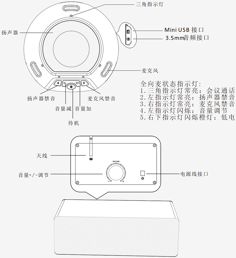 全向麥:155*148*37mm,音箱:410*210*150mm;重量:全向麥:342g;音箱:4.6KG