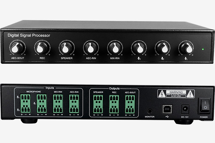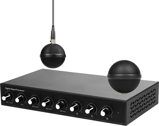教育互動(dòng)錄播系統(tǒng)的高音質(zhì)音頻處理器+2路有線吊頂麥克風(fēng),音頻處理器可連接有源音箱放音,音頻處理器可接耳麥、手持麥、調(diào)音臺(tái)、錄播盒子;2路吊頂麥克風(fēng)拾音;主機(jī)音頻處理器配有獨(dú)立的輸入、輸出音量調(diào)節(jié)旋鈕。